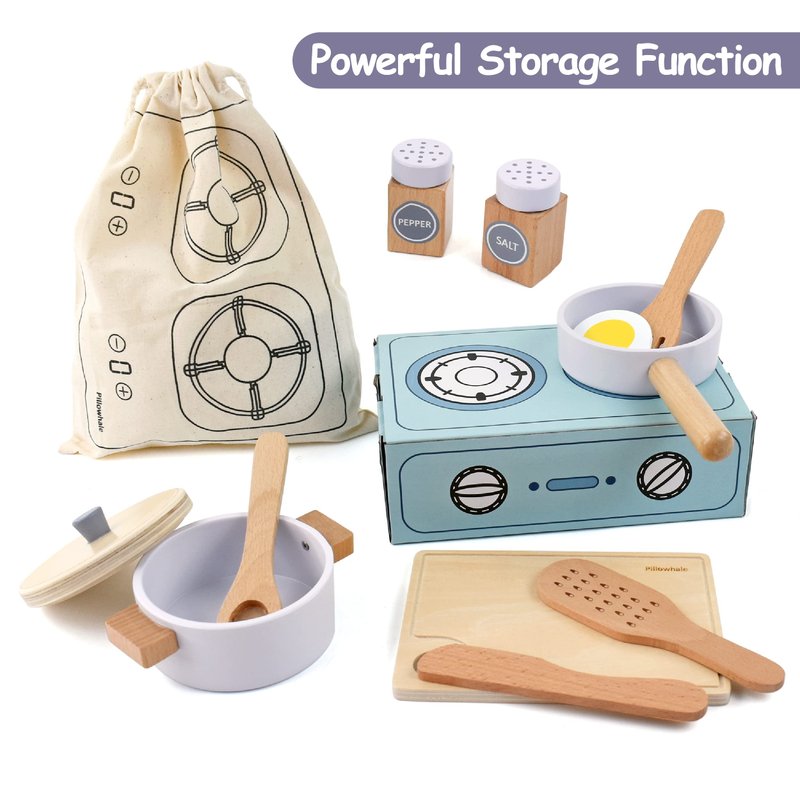 - Play Kitchen Pots and Pans: Stir up some fun with our wooden cookware toy set, igniting a world of playful kitchen adventures that will whisk young chefs away on a delightful journey