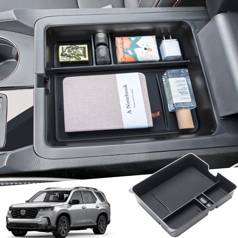 PIMCAR Compatible with 2023 2024 Honda Pilot, 2024 Honda Ridgeline/Passport Center Console Organizer Insert Tray Accessories Armrest Box Divider ABS Plastic Material