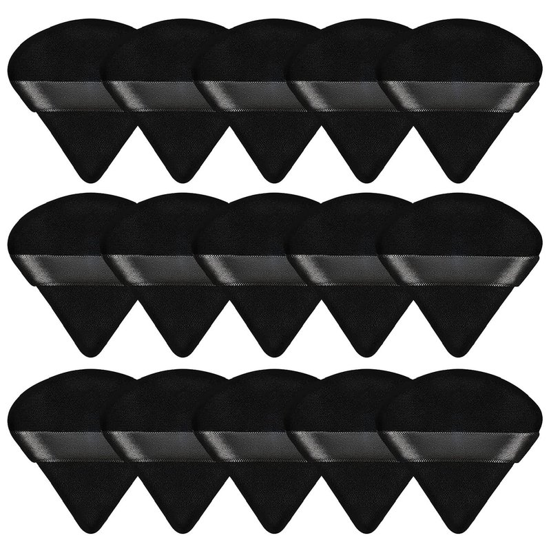 Pimoys 15 Pieces Powder Puff Triangle Makeup Sponge Setting Powder Puffs for Loose Powder Velour Puff for Face Exquisite Makeup Eyes Contouring, Blender Sponge Beauty Makeup Tool(Black)