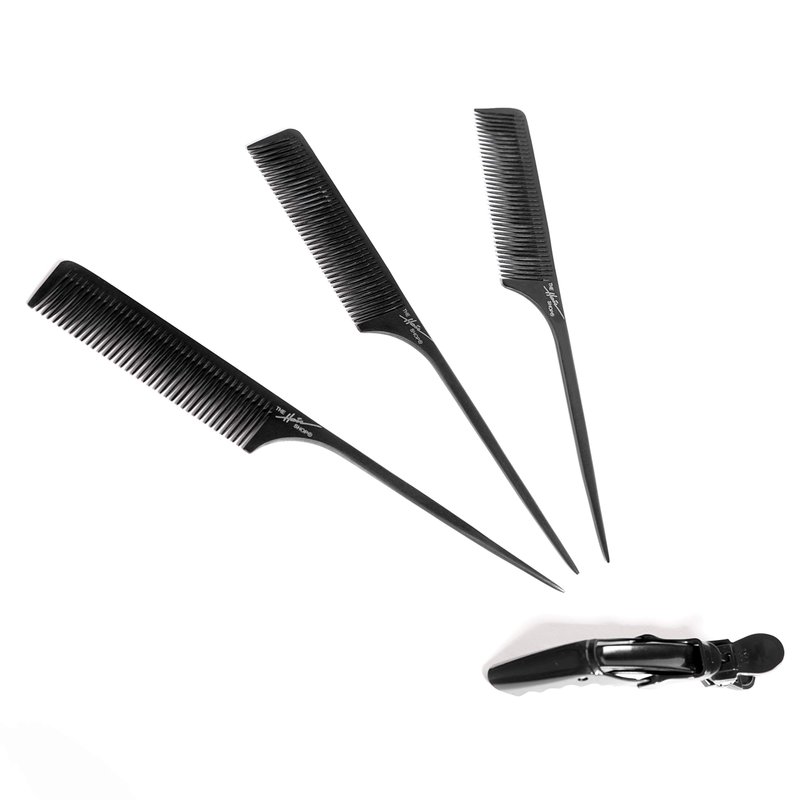 Pin Tail Comb by The Hair Shop, Premium Ergonomic Black Pin Rat Tail Carbon Fiber Heat Resistant Teasing Combs with Pintail (Black) 3 Pack w/FREE Shark Clip