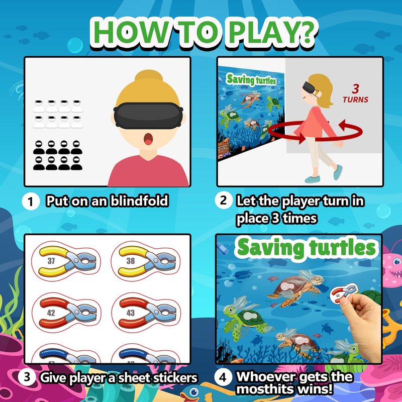 • Ocean Theme Party Decorations - Turtle party games will be an absolute hit at your kids' party. Whether it's a birthday party, family gathering, boys' birthday party, kids' games, christmas party, thanksgiving party or any other event, this game is suitable. After the party, the farm animal poster can be used as decor the wall and room, preserving the good memories of the party.