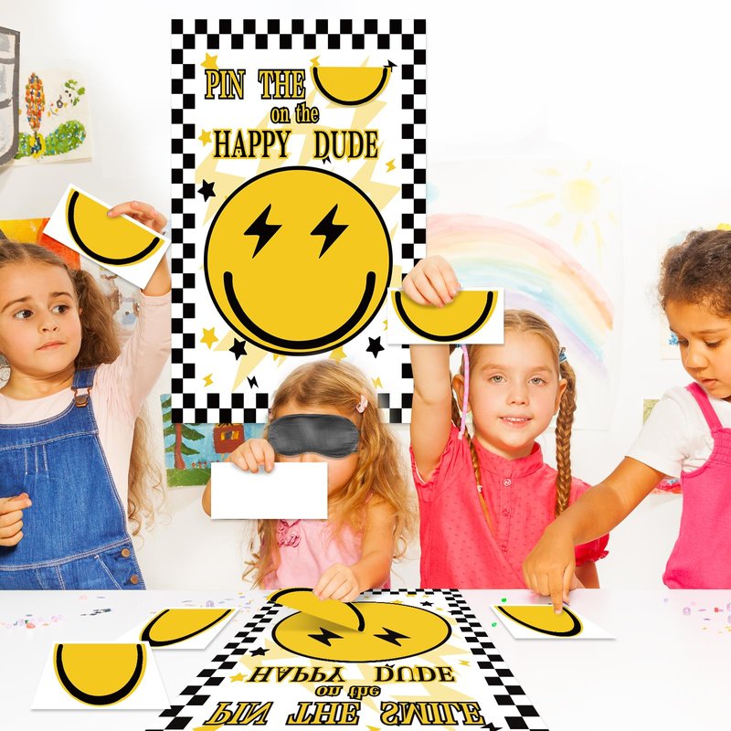 - 【ONE Happy Dude Party Game】The package comes with 1 face poster, 10 stickers and 1 blindfold.Great games for any themed parties such as birthday parties, festive parties and school activities.