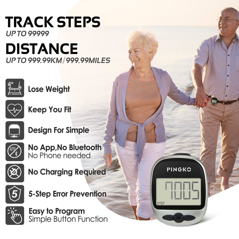 How to get fit and healthy, stay motivated and reach your fitness goals by taking more steps each day The PINGKO Walking Pedometer helps you to track your activity throughout the day and achieve your fitness goals. You will soon see how your steps add up while also encouraging you to do more, walk further each day and set bigger goals.Track Your Activity Accurately Everywhere You GoFeatures advanced tri-axis walk sensor technology so that you can attach the pedometer to your waist or shoes- detachable strong clip and strap so you can forget about it while it accurately monitors your daily activity.Walk Sensor technology - to avoid counting sudden movements as steps, the counter will not count any movement less than 10 consecutive steps.This is outdoor sports pedometer,designed for continuous exercise,slight movement is not count. It did count the steps to check the accuracy and it was spot on!.Monitor EverythingMeasure the daily steps taken, count calories burned, track distance walked in miles or kilometres.How to change it from kilometers to miles: