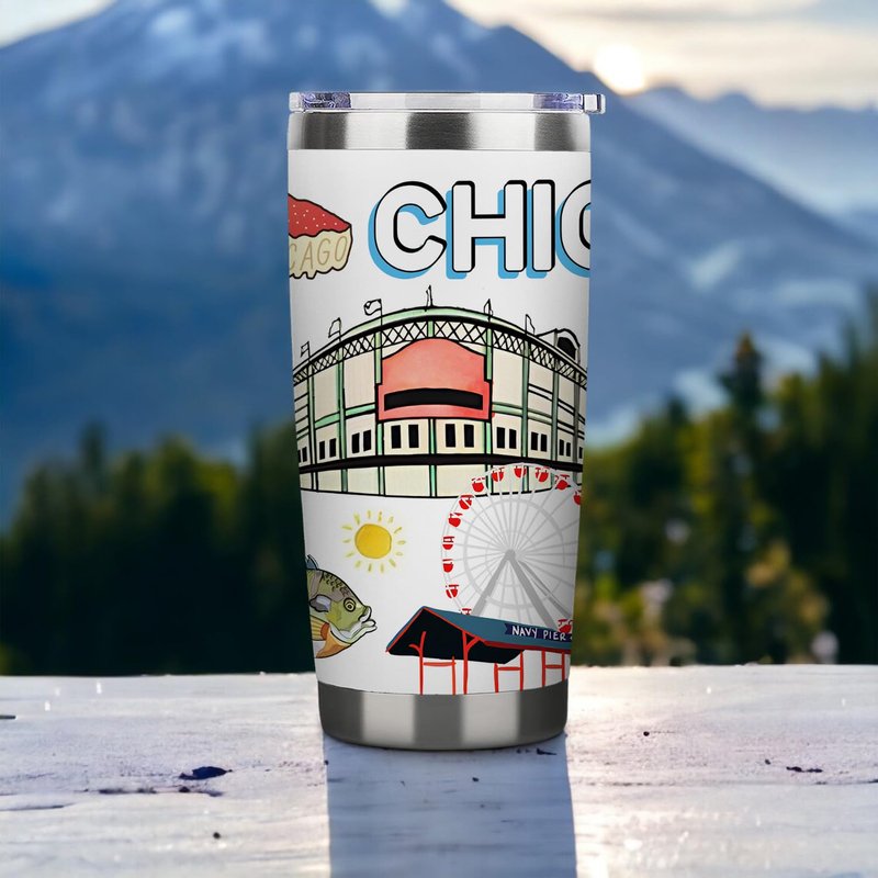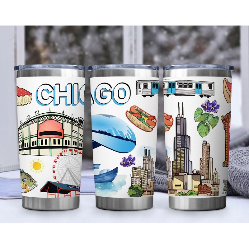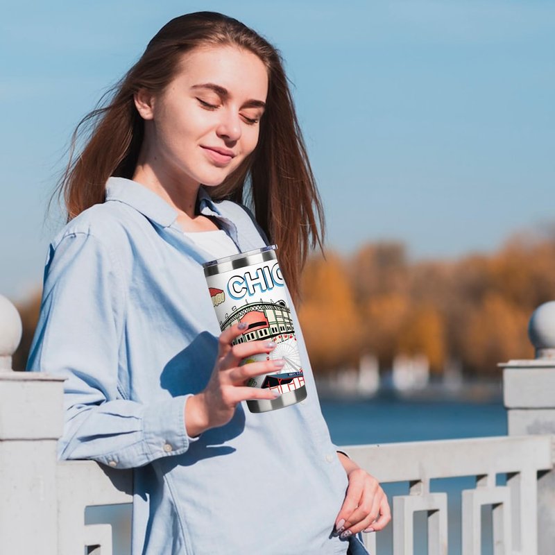Pininerr City Tumbler for City Lover,20oz Double Wall Vacuum Insulated Stainless Steel Coffee Cups (Chicago)
