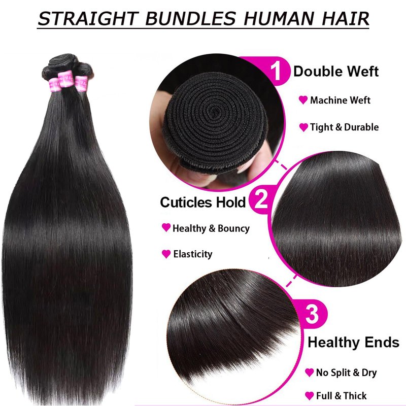 - 【Weave Bundles Human Hair Color】Straight hair bundles is natural black color.Remy hair bundles can be bleached,dyed,permed.Bundles human hair straight is easy to be restyled what you like.