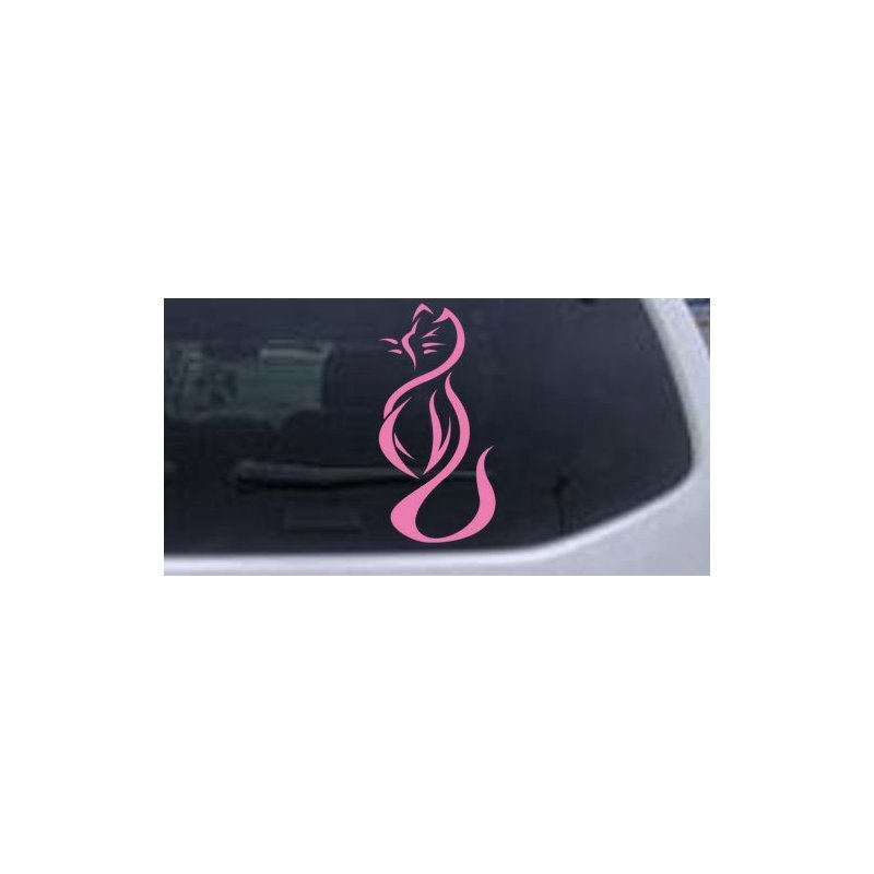Pink 11.5in X 5.5in -- Tribal Cat Animals Car Window Wall Laptop Decal Sticker When making your color choice please be aware that our decals do not have a background or background color at all. These are decals not stickers. . When applied all you will see is the outline as shown in the images. If the decal will be going on glass you will want to use a bright color like white, yellow or pink. Black and other dark colors will not show up well on glass. Our decals are die cut from solid 2.8mil vinyl. The vinyl is rated at 5yrs outdoors. Our decals can withstand cold, hot and wet weather with no problem. If you are using the decal inside they will pretty much last as long as you want them. The decals can be removed from any surface but cannot be reused once removed. If applied to a painted surface such as a wall or auto body the paint may come off with the decal when removing it. Our decals can be applied to any smooth flat surface including car, truck, van and suv windows. Our decals can also be used on the body or hoods of automobiles like sports cars, race cars and trucks. You can even use our decals on your motor home or camper. Our decals can also be used for wall art. You can apply any of our decals to the walls in your home, office or garage to add whimsical art. You can also use our decals to personalize your laptop or books. Our decals make great laptop skins. Other places you could use our decals include - horse trailers, kayaks, boats, vans, motorcycles, ATVs, snowboards, snowmobiles, surfboards, RVs, helmets, glass doors, gun cabinets, mirrors, walls, mailboxes, picture frames, tool boxes, painted wood, aluminum, plastics, fiberglass etc...