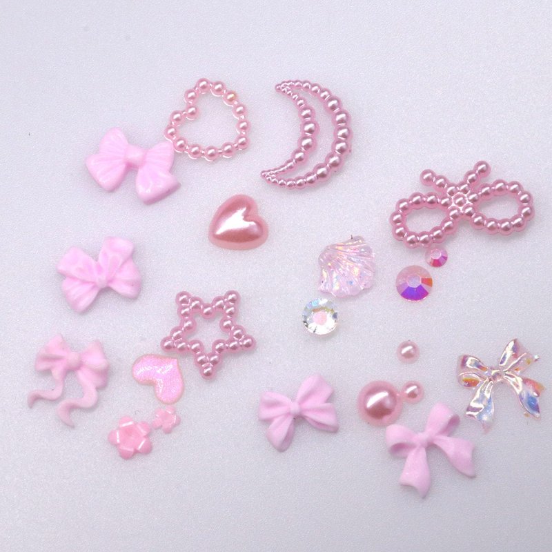 - Nail gems and Charms: nail art jewels and charms are resin charms. pink nail jewels for nail art, gems for acrylic nails, pink charms for nails, bow nail charm, pearl heart nail charms, nail bling charms.
