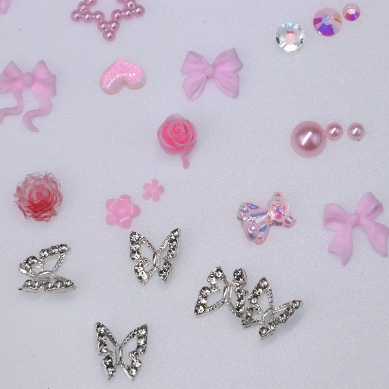 - Nail art charms&Nail rhinestones: You will get Pink 3d assorted acrylic nail art charms featuring in flowers, hearts, bows, butterflies, stars, crystals and other variety shapes nail gems, rhinestones for nails, nail decor and pink bulk charms for nails.