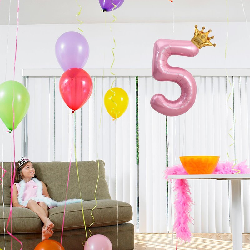 - 【PACKAGE INCLUDES】Pink Number Balloons*1, Mini Crown Balloon*1, Straw*1, Glue Dots*10 (Connect the crown balloon to the number balloon)