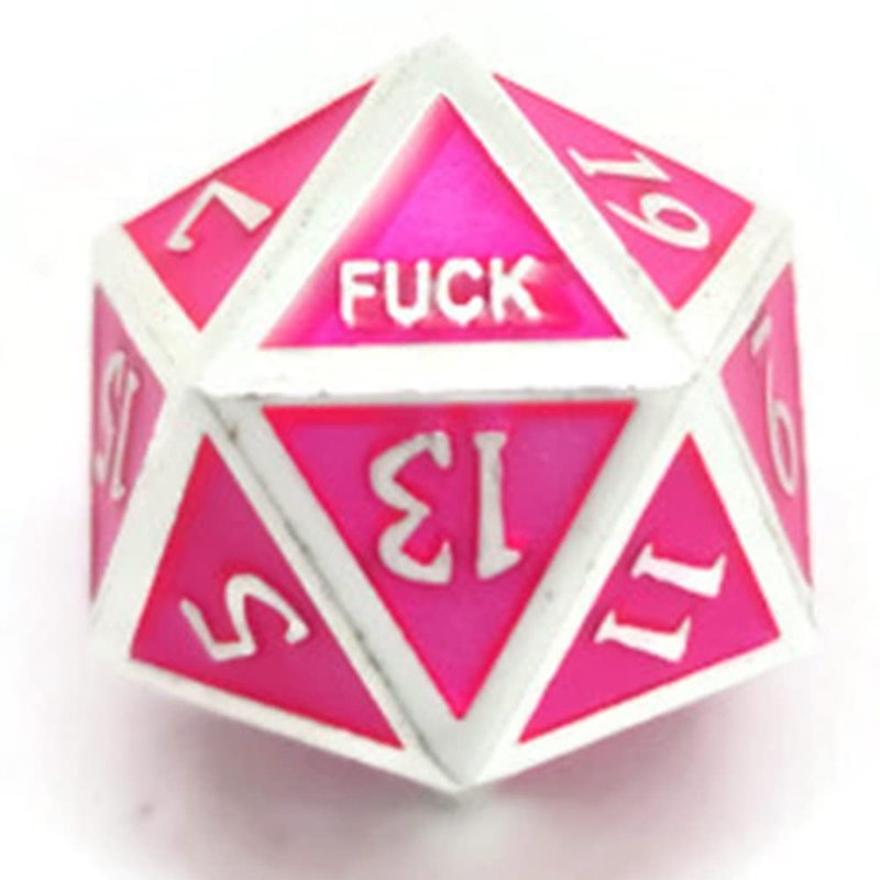 Pink and Silver Metal D20 F*** Dice Critical Fail F 20 Sided Die Set DND Black Gunmetal Color Number for Role Playing Game Dungeons and Dragons D&D Pathfinder Shadowrun Girl Gamer Female