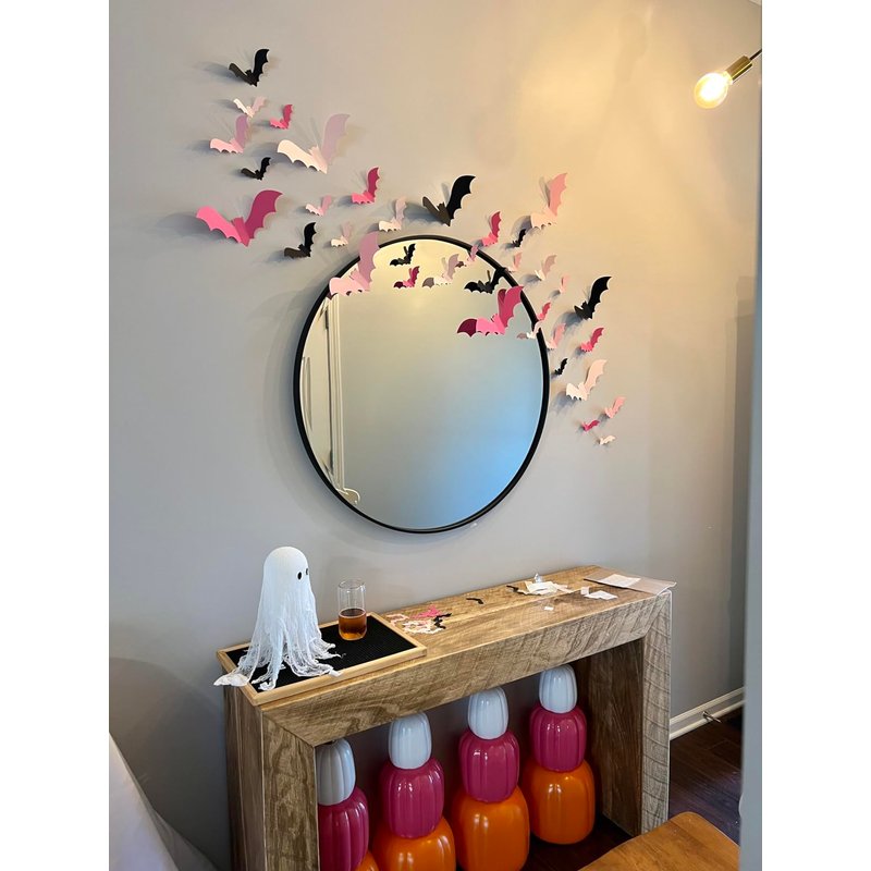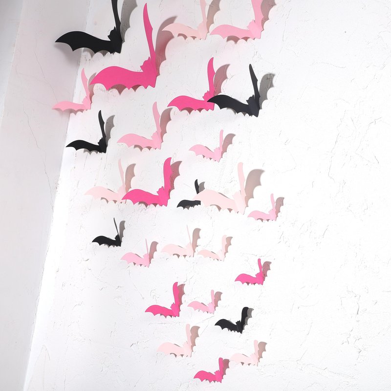 - ADD A TOUCH OF SPOOKINESS TO SPACE - Transform your space into a bewitching haunt with our Black and Pink Halloween Bat Wall Decor Set. These charming and eerie bats will add a touch of spookiness to your Halloween decorations, creating the perfect ambiance for a ghoulishly good time.