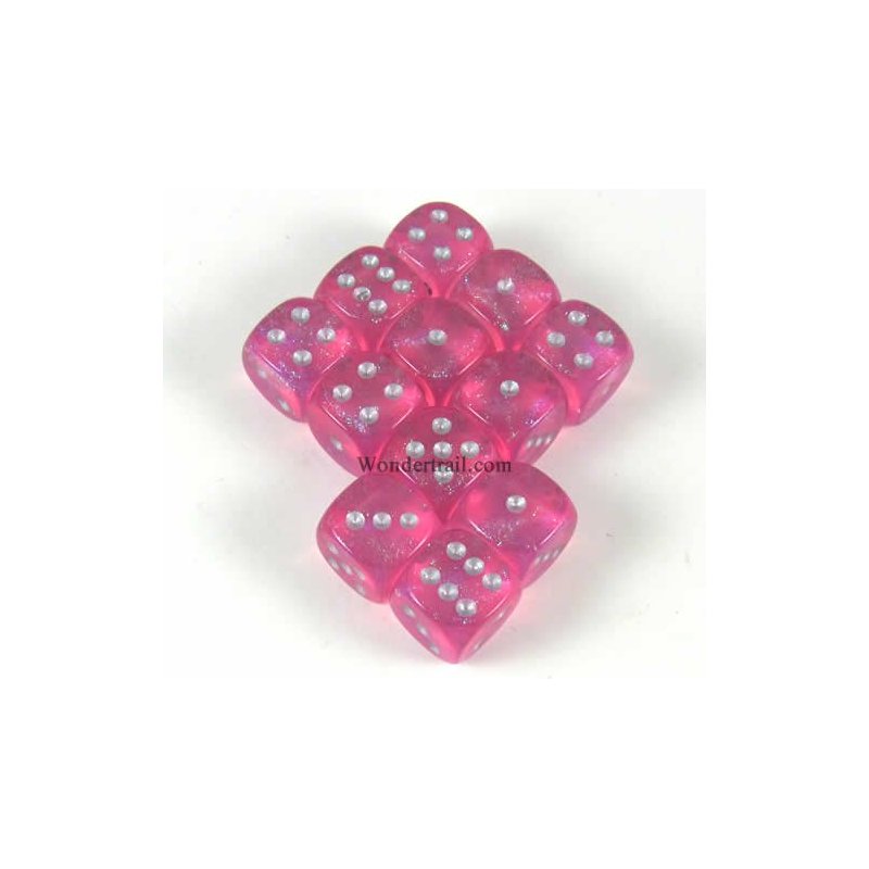 Pink Borealis with Silver Pips 12mm D6 Dice Set of 12 Wondertrail WCX27804E12