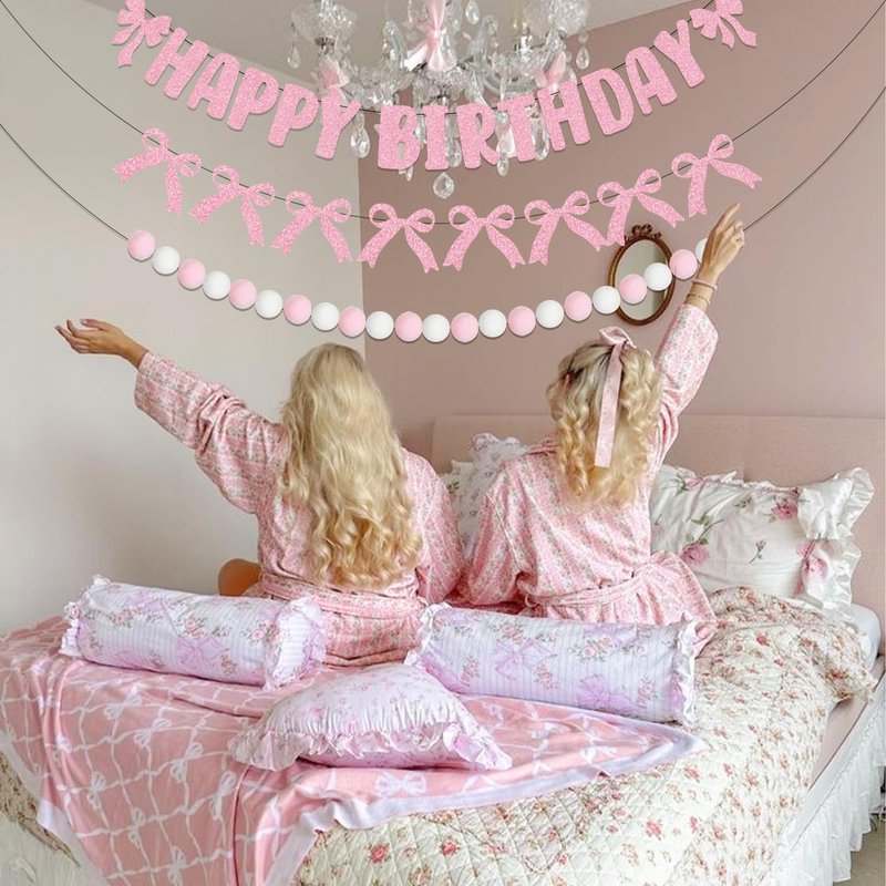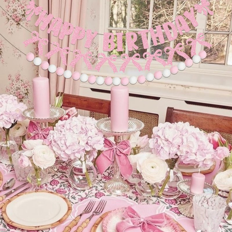 - 【Chic Bow Design & Soft Pink Aesthetic】 This bow birthday decorations features stunning pink bow decorations and tassels that add a coquette flair to any celebration. With a delicate pastel palette, these decorations create a dreamy, elegant atmosphere—perfect for feminine, classy, or playful birthday themes