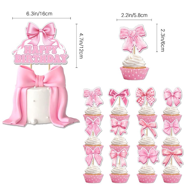 - PINK BOW THEME: Our pink bow birthday party decoration set is designed in creative pink bow style. With all shapes of pink bows, this complete package brings a pretty and cheerful spirit to your birth day party. 12 pcs non-duplicate cupcake toppers feature an adorable design. This pink bow decoration will help you create an unforgettable princess birthday party!
