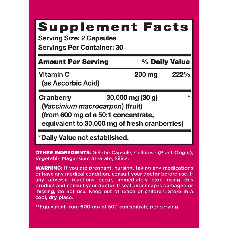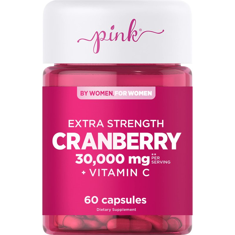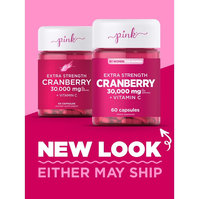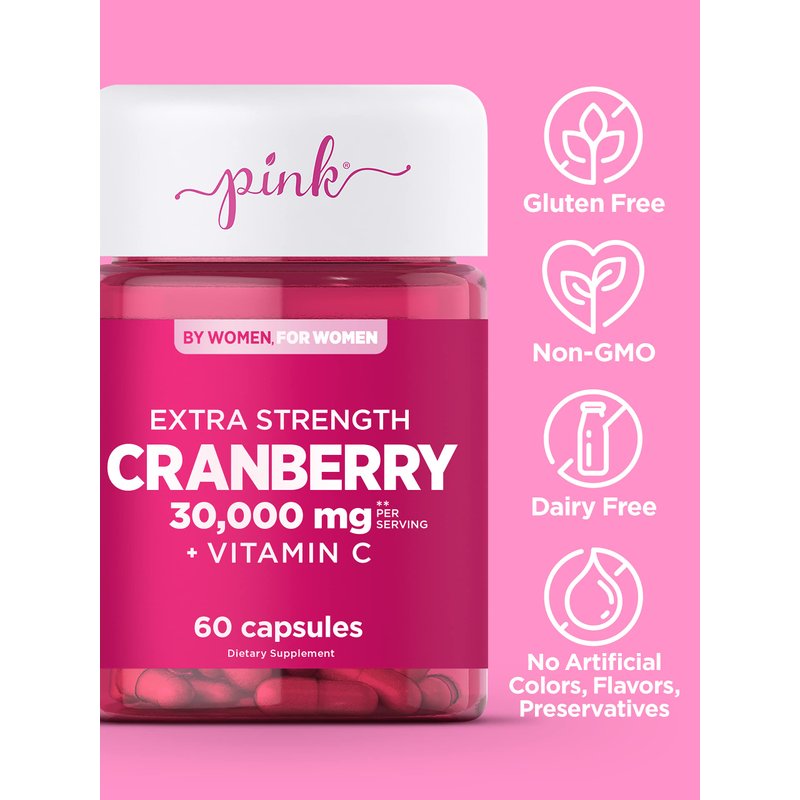 PINK Cranberry Pills for Women | 60 Capsules | Plus Vitamin C | Non-GMO & Gluten Free Extract Supplement | Supports Urinary Tract Health