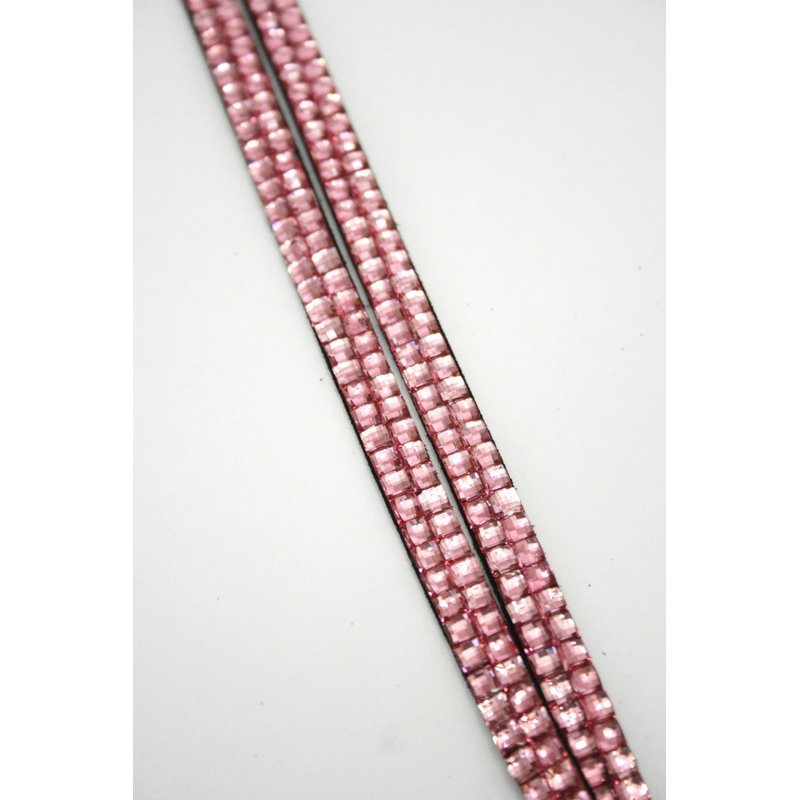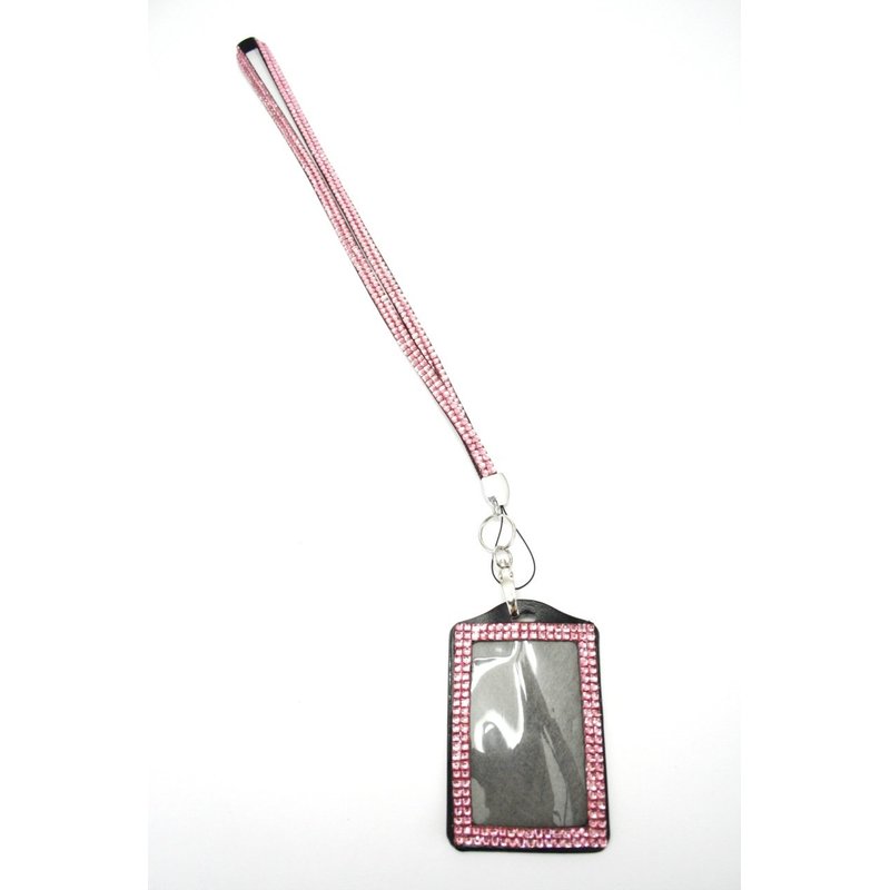 Pink Crystal Lanyard w/ Vertical Rhinestone Lined Badge Holder
