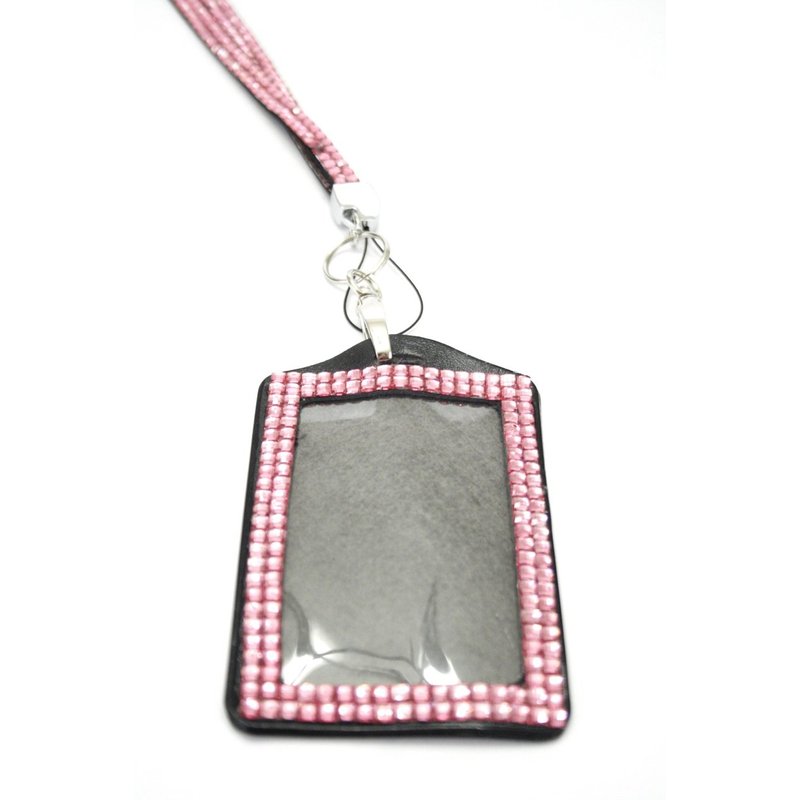 - This rhinestone ID badge holder easily detaches from the lanyard itself and acts as an independent product with for other uses like protecting your driver's license, work credentials and/or credit cards. This stunning rhinestone custom-built lanyard says business and play all at the same time