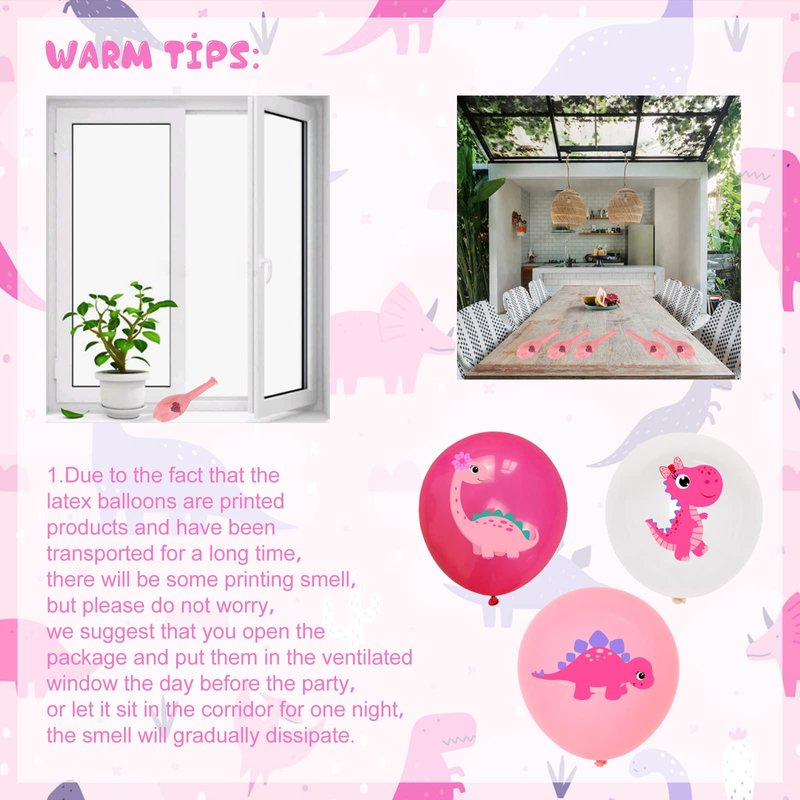 - Dinosaur Balloons Set: You will get 36pcs dinosaur print latex balloons 12 inches ( 12 hot pink, 12 pink, 12 white). There are enough balloons to decorate your party.