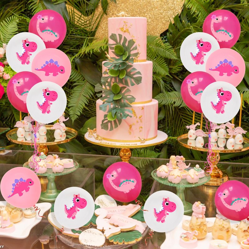 Pink Dinosaur Balloons for Girl, Dinosaur Party Supplies Pink, Dino Print Latex Balloons for Birthday Baby Shower Dinosaur Themed Party Decorations