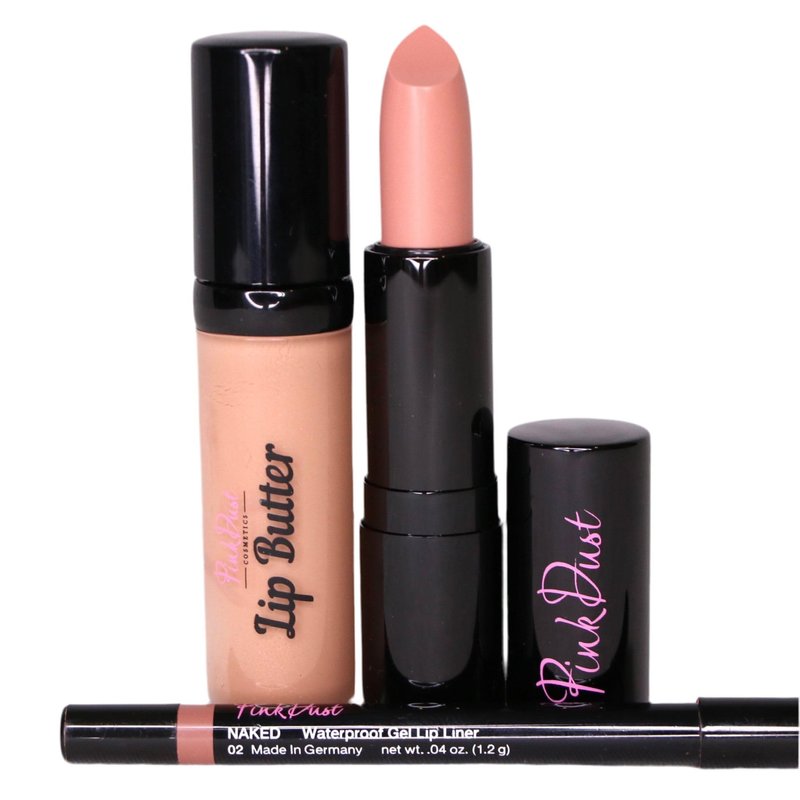 Pink Dust Naughty Nude Lip Combo - (Pack of 3) Naked Liner, Pink Nougat Lipstick, Lip Butter Lip Gloss - Lips Combo Makeup Kit