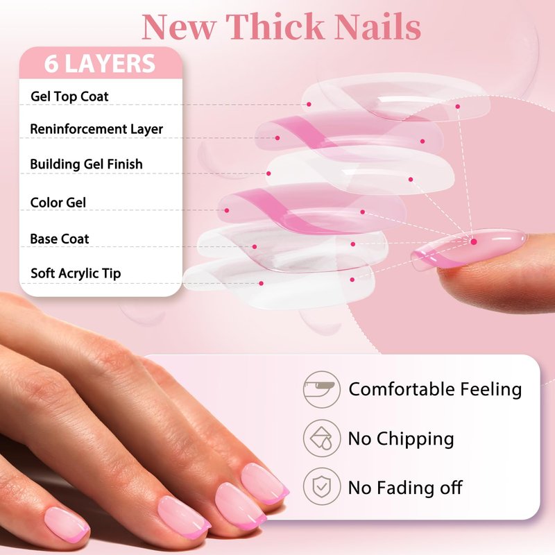• 💝【How Natural They Are】These French press on nails square nails designs look very natural,with a perfect that fits your nail bed,and a nude pink base color that gives the appearance of real nails.French tip press ons nails Pink can create your own fingertip art and make your nails your fashion statement!With short press on nails French tip,you can achieve a natural, elegant look without the salon visit.