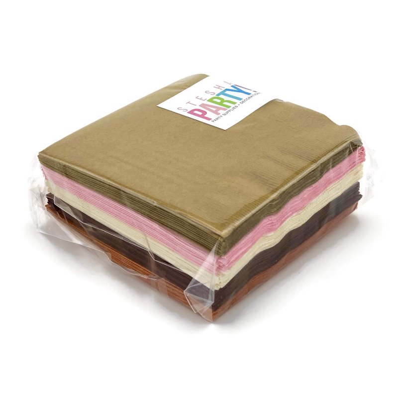 Serve cake and drinks at your woodland birthday or baby shower using these party napkins! Includes 50 beverage size (5" x 5") 3-ply paper napkins in an assortment of pink, gold, ivory, brown, and pumpkin.
