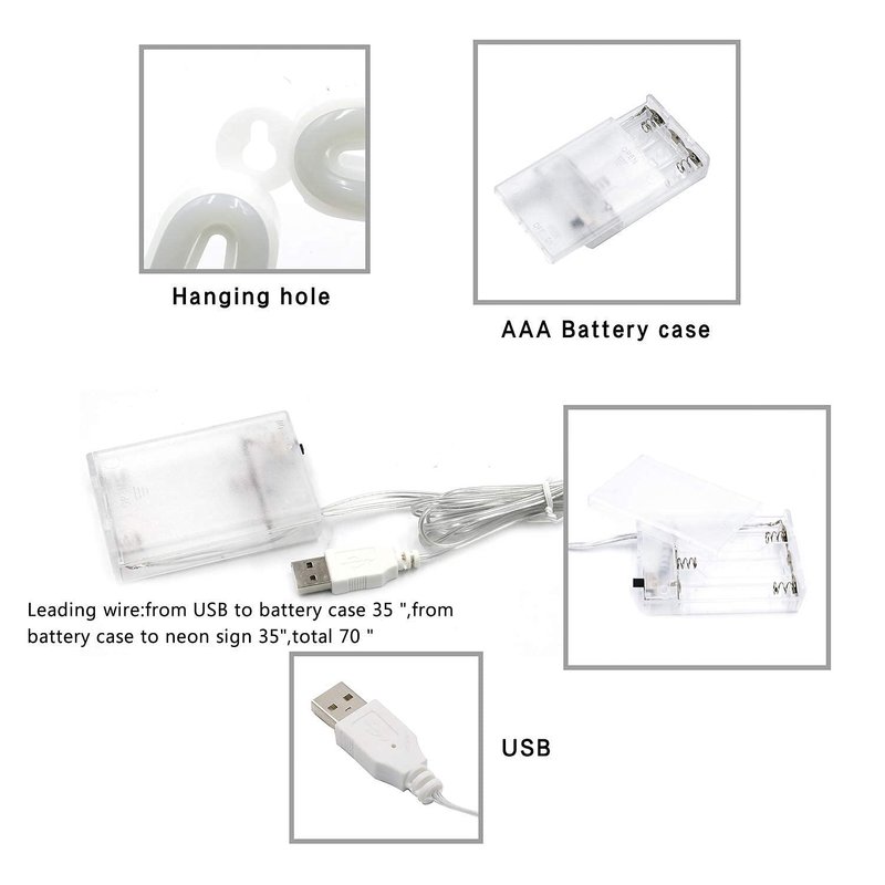 - Dual Power Supply and Easy use: USB (included) and 3 AA batteries (not included) power supply, Low energy consumption and long lifespan; You can either use batteries or put it in power bank etc; There is a hole for easy hanging; The heart lights plug in will bring romantic atmosphere to your home