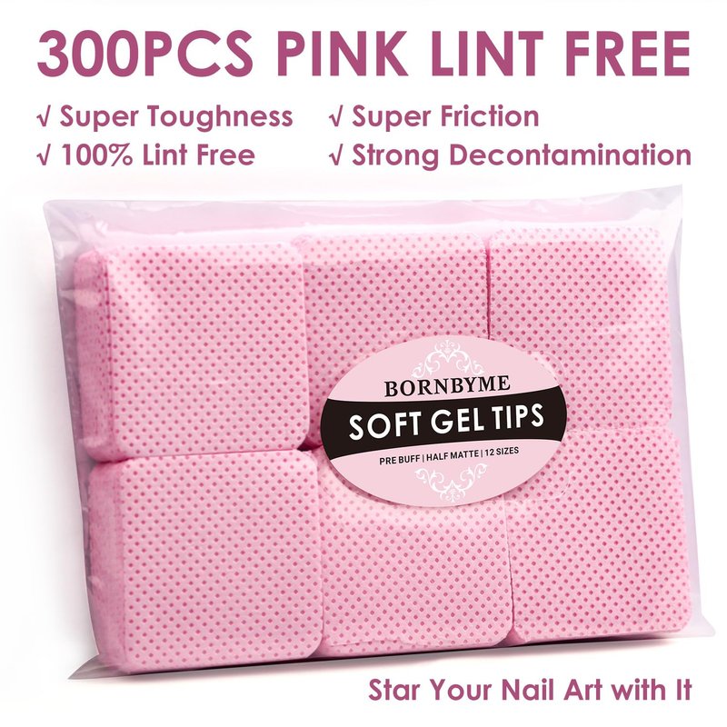 Pink Lint Free Wipes, BORNBYME 300 PCS Super Absorbent Soft Nail Wipes Gel Pads for Nail Remover, Nail Clean, Nail Prep, Eyelash Extensions Remover, Cleaning Glue, Cleaning Brush