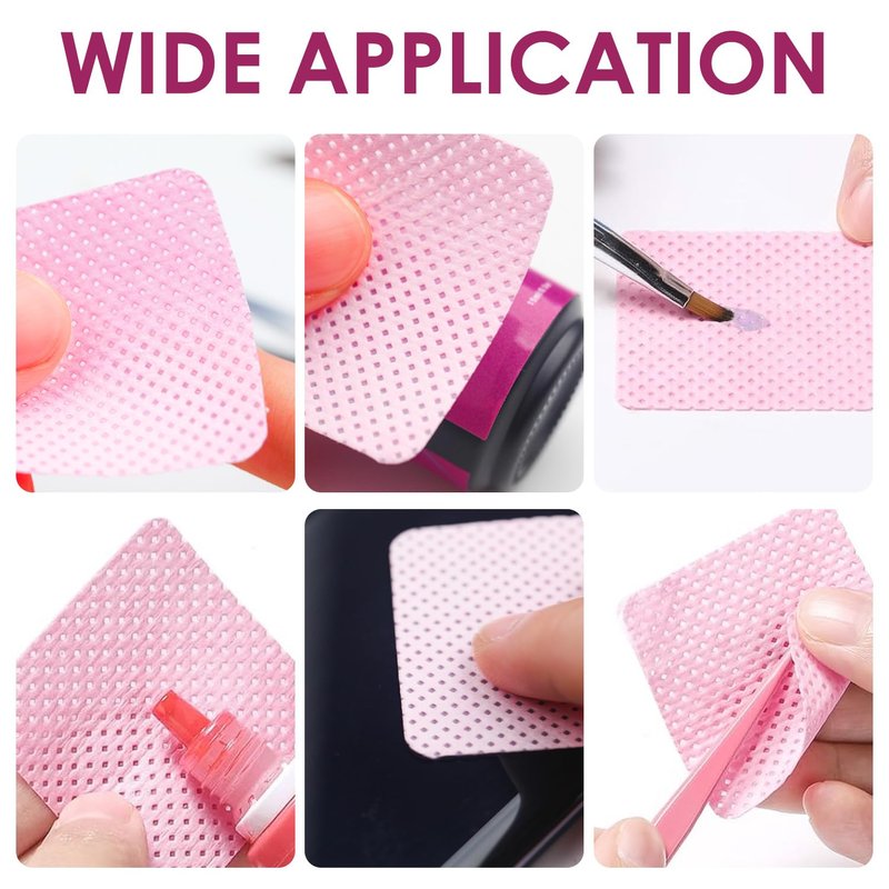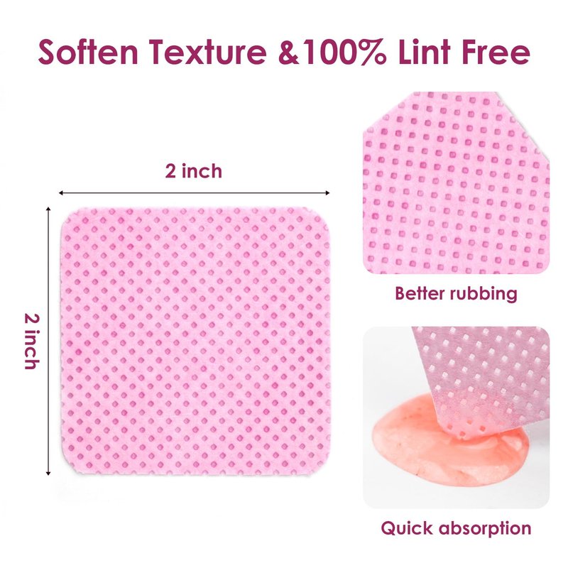 - Super Absorption Wipes: With super absorption, this Nail Wipes : Lint-Free Nail Wipes are made from a special non-woven fabric material that measures 1.97’’ x 1.97’’ each. Soft, Highly absorbent, and not easy to fall off. Lint-free wipes for nails are Conveniently designed for ease and comfort soft touch easily absorbs nail remover without shedding are soft, strong water absorption, and anti-static. Effectively hold up acetone, and can quickly remove nail polish and gel polish