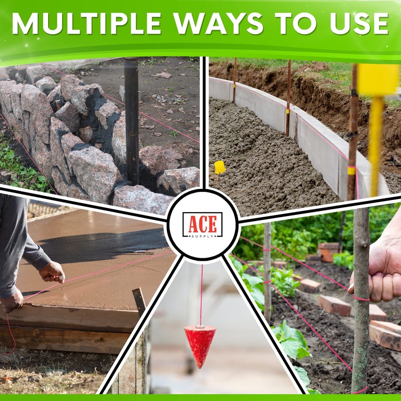 - Bright colors - Each braided masonry line roll is fluorescent and easy to see. Perfect outdoor string for use as landscape twine, property line markers, construction twine, or marker string.