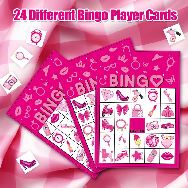 Pink Party Bingo Games Hot Pink Birthday Party Games for Kids Adults Pink Girls Birthday Party Favors 24 Players Bingo Cards Princess Doll Bingo Game for Family Holiday Gatherings Party Supplie