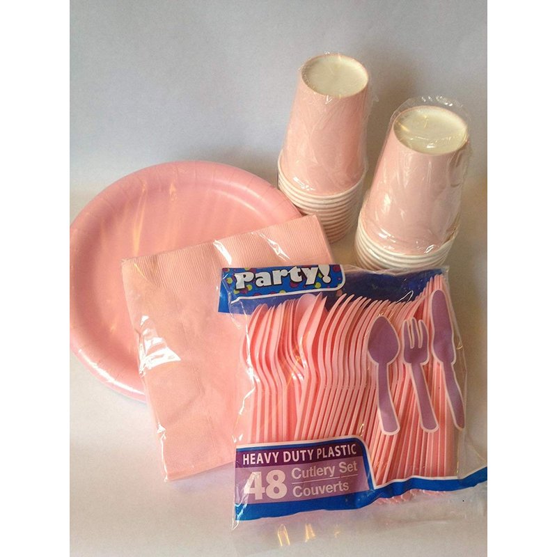 Pink Party Supplies Kit - Paper Plates, Napkins, Cutlery & Cups ~ 112 Pieces