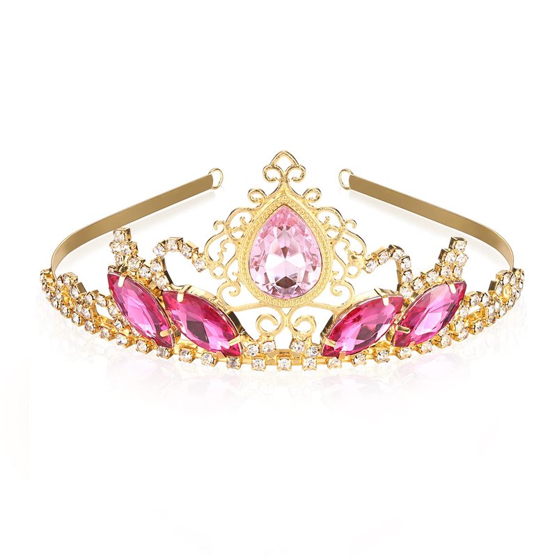 Pink Rhinestone Princess Tiaras Fairy Bridal Headpiece Birthday Halloween Gold Crown for Teen Girl
