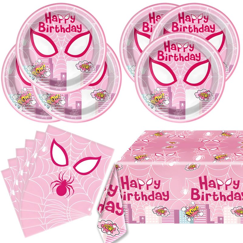 Pink Spider Party Tableware, Spider Pink Ghost 20 Plates 20 Paper Napkins and 51''x86'' Tablecloth,Super Girl Hero Birthday Party Supplies