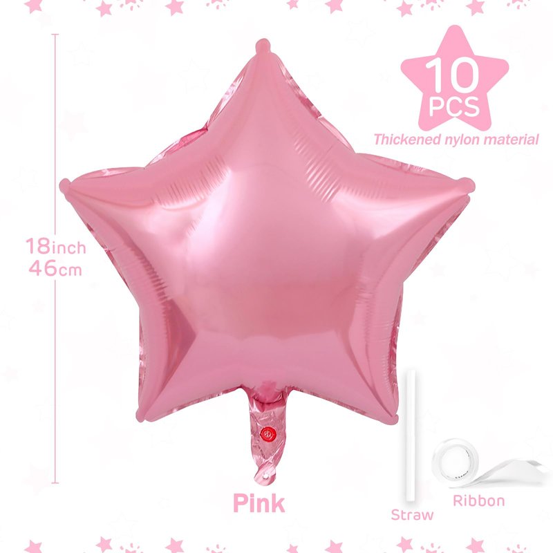 Pink Star Balloons 18 Inch, 10 Pcs Candy Pink Star Shaped Mylar Helium Foil Metallic Balloon for Birthday Party Decorations Baby Shower Wedding Anniversary Backdrop Girls Party Supplies