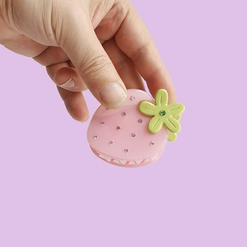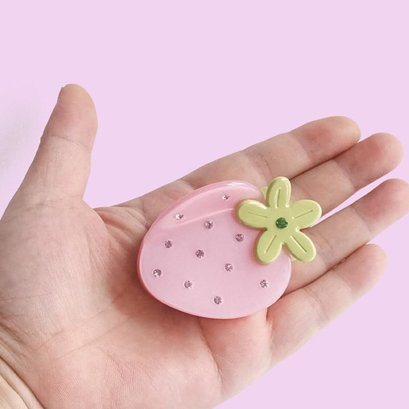 Pink Strawberry Hair Clips,Cellulose Acetate Hair Clips,Small Claw Clips for Girl,Hair Accessories