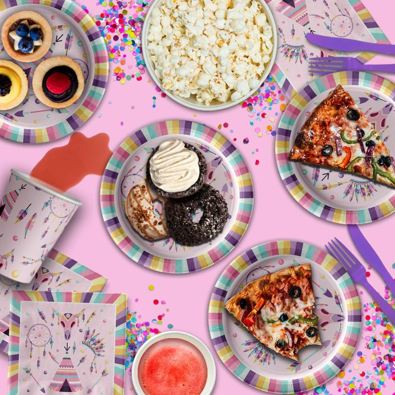 - PREMIUM DESIGN - Our Pink Tribal Boho Themed Party Supplies are suitable for girl’s and boy’s birthday parties, holiday celebrations with your family and friends, special events or for just fun-filled daily meals, snacks, and desserts with picnics and cookouts. Shrieks of joy will be your reward when you use these fun and unique party tableware sets.