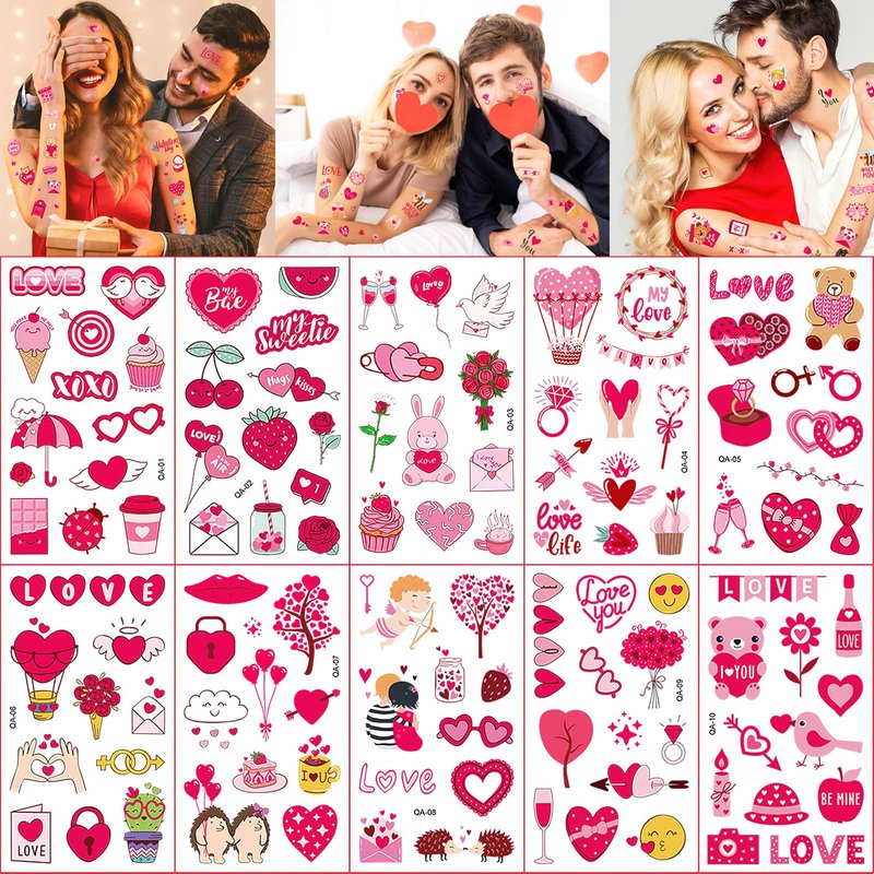 - Valentine's Day Wedding Tattoos: 10 Sheets Valentine's Day Themed Different Style romantic temporary tattoos for Couples Lovers