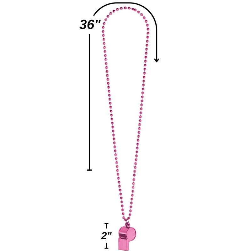 Pink Whistle On Chain Necklace (36") 1 Count - Premium Quality Plastic, Lightweight & Durable - Eye-Catching Design & Multipurpose Accessory - Perfect For Sports, Safety & Fashion