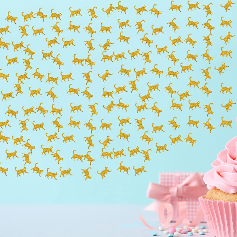 PINKAAJ Set of 100 Cat Confetti, Glitter Cat Paper Scatter, Cat Birthay Party Confetti, Cat Smash Cake Decor, Pet Cat Birthday Party Decor, Kitty Birthday Party Supplies (GOLD)