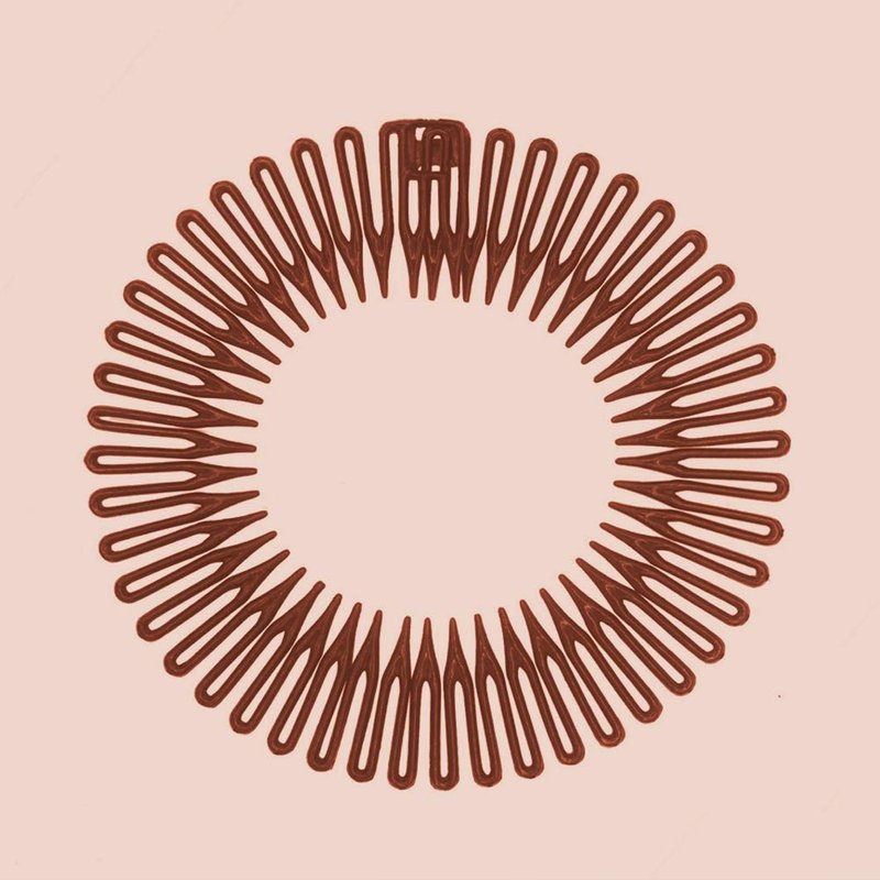 These circular headbands with plastic teeth all around their perimeter to ensure it does not slip off of your head.