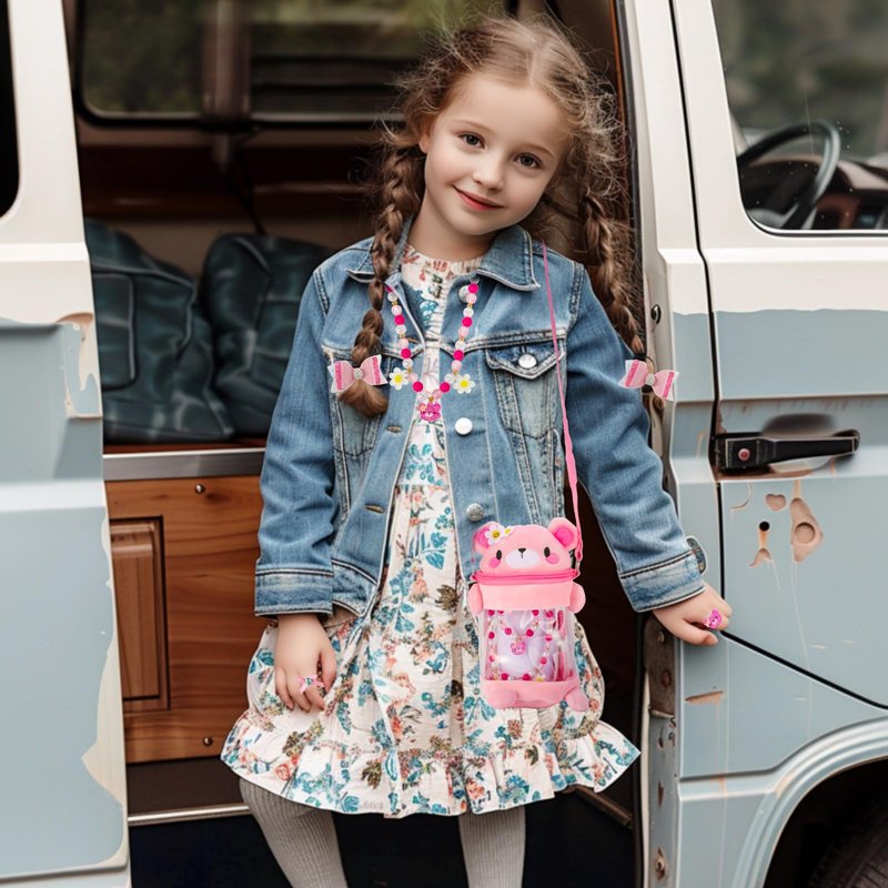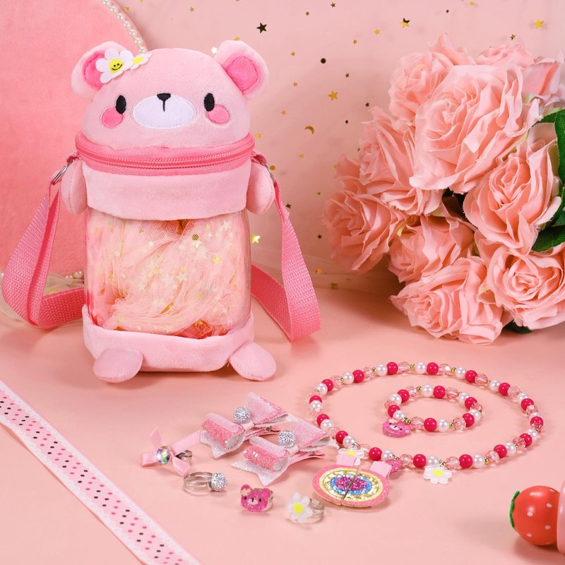 - 【Pink Bear Design】The PinkSheep little girls toy jewelry set, Incorporate pink plush teddy bears into bags, necklaces, bracelets, and accessories,Dressing up with gummy bear jewelry not only makes children look cuter, but also accompanies them like friends, giving them a warm and sweet feeling