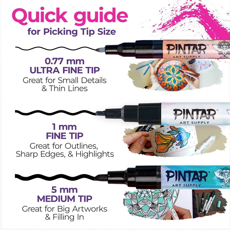- An Artisan's Promise: At Pintar, we're driven by a passion for providing the highest quality tools for artists. Our premium medium-tip acrylic paint set, brimming with vibrant Japanese ink, is designed to inspire and enhance your creativity, making every artistic endeavor an immersive experience. With Pintar, you're investing not just in paint pens, but in a colorful and dynamic artistic future.