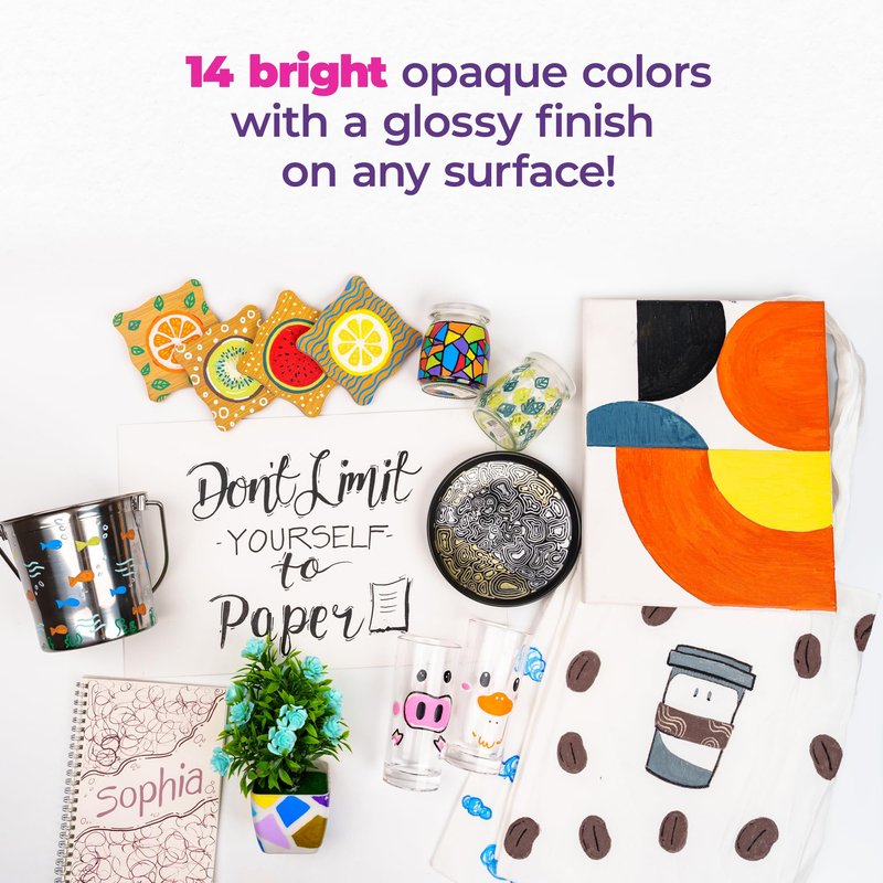 PINTAR | 14 PACK | Metallic Acrylic Paint Markers Extra Fine Point | Leather, Shoes, Rock Painting, Wood, Glass | Metallic Paint Pens | Pack of 14, 0.7mm