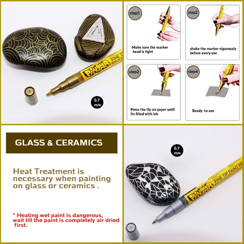 - MULTI-PURPOSE PAINT MARKERS - Pintar Gold Marker and Silver Marker are the best choice to work on a variety of surfaces. Including rock painting, ceramic, wood, leather, plastic, fabric, canvas, stone, glass, metallic, wood and much more.