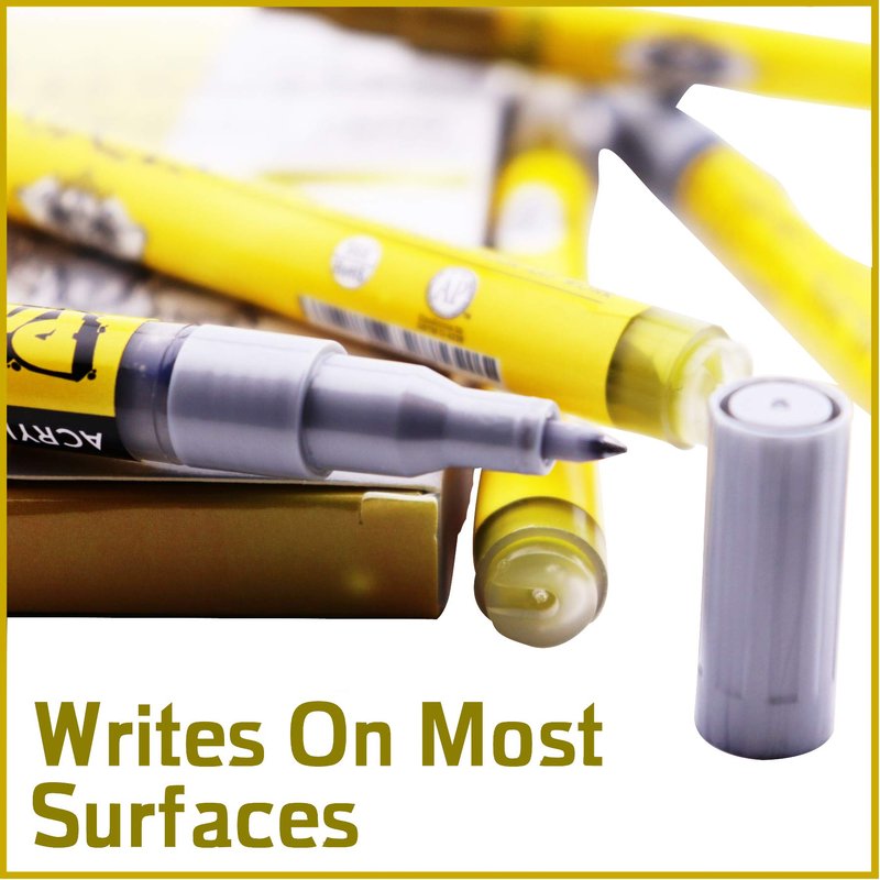 - PREMIUM ACRYLIC COLORS - Pintar 6 Pack Extra Fine Point Paint Pens 0.7mm Tip with 3 Gold and 3 Silver Paint Pens, highly pigmented acrylic paint ink dries quickly to produce a very durable opaque and glossy finish on light and dark surfaces. They can be used to add writing, calligraphy, and embellishments to virtually any surface.