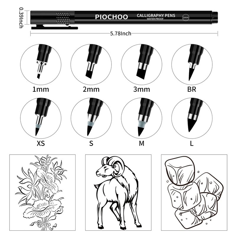 Piochoo Calligraphy Pens,8 Size Calligraphy Pens for Writing,Brush Pens Calligraphy Set for Beginners, Hand Lettering Pens