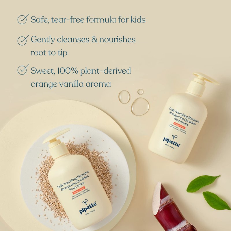 - HELP STRENGTHEN DELICATE STRANDS: Pipette's tear-free, sulfate-free kids shampoo is infused with plant-derived ancient superfood quinoa (a vitamin-rich ingredient) nourishing hair from roots to ends, leaving kids hair feeling soft and resilient.