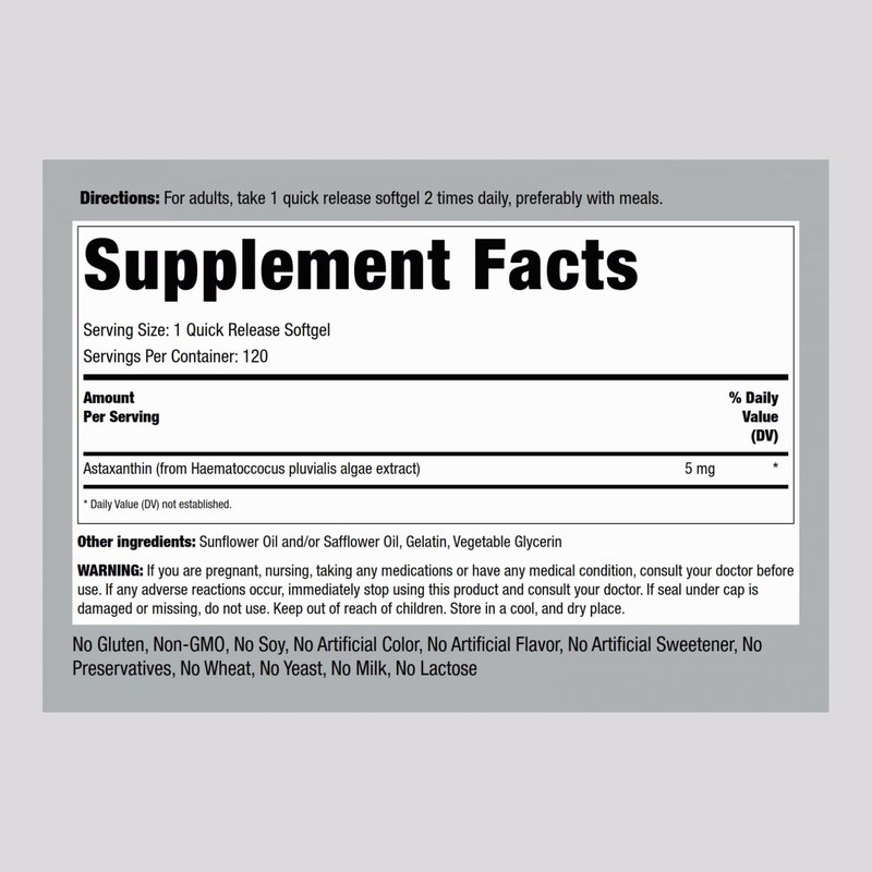 Piping Rock Astaxanthin Supplement 5mg | 120 Softgel Capsules | from Haematococcus Pluvialis Algae Extract | Non-GMO, Gluten Free