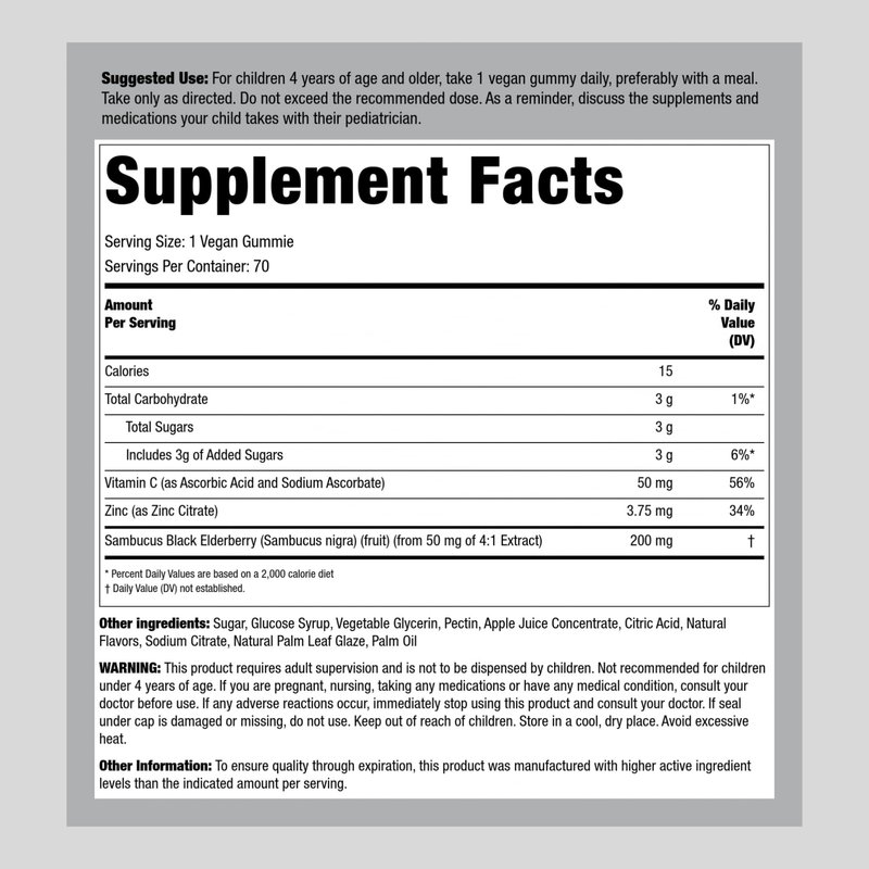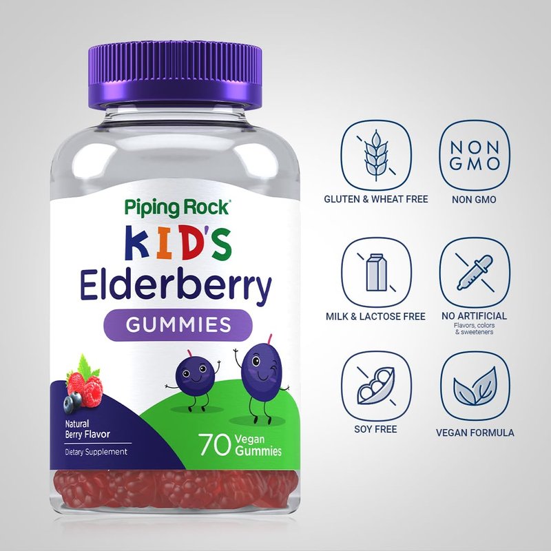 Piping Rock Kids Elderberry Gummy Vitamins | 70 Gummies | with Zinc and Vitamin C | Vegan Formula | Berry Flavor | Non-GMO, Gluten Free Supplement